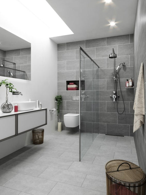 Prime TilesGranda is a beautifully polished and rectified concrete effect tile in a 600mm x 600mm size. This tile boasts a stunning high gloss finish, it look...
