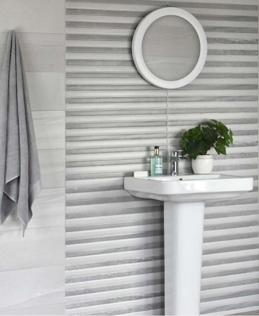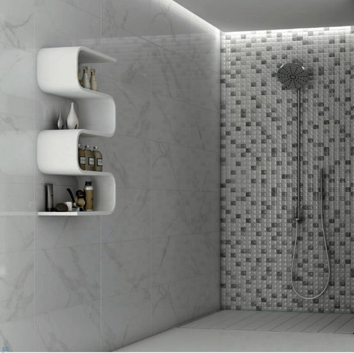 We Sell Any TilesA light grey marble effect tile in a high gloss finish, this stunning collection is enhanced by a complementary wave design and mosaic decor option...